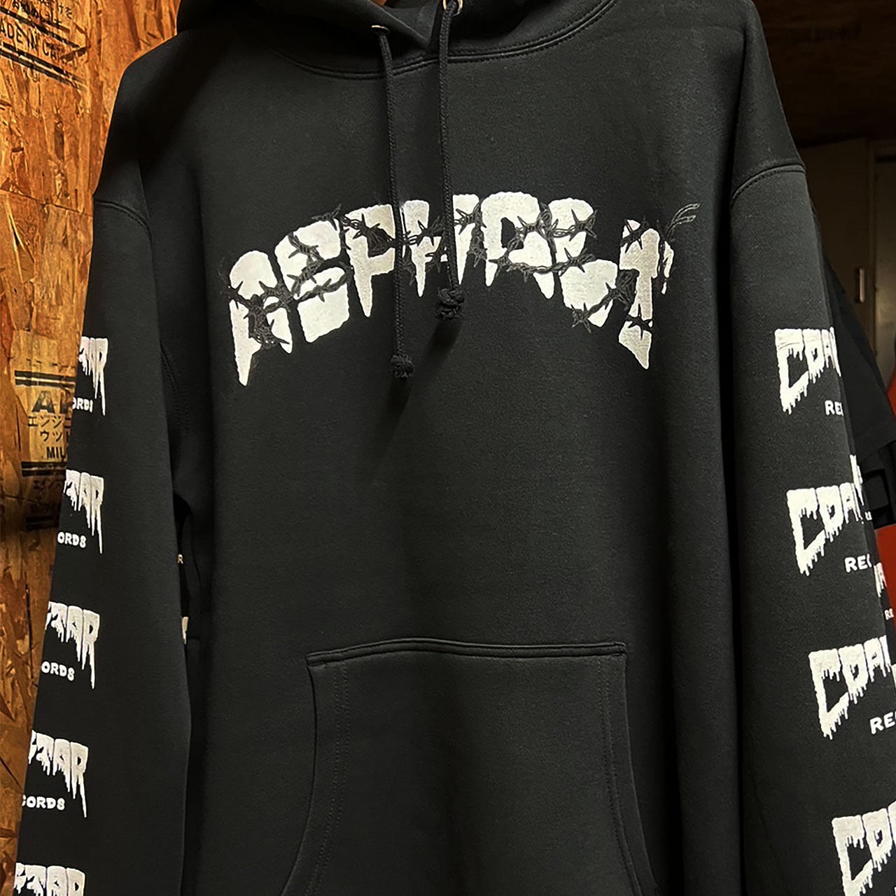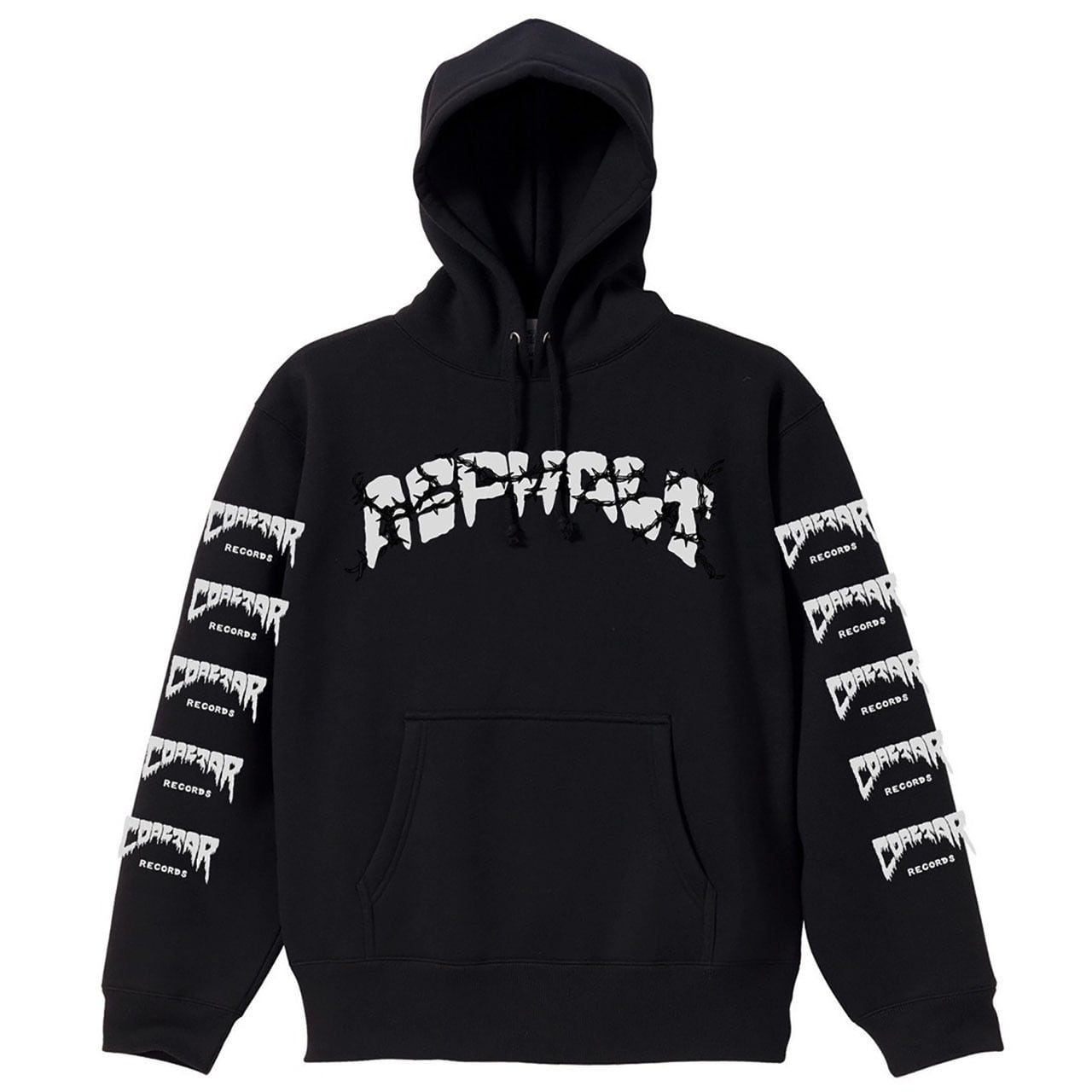 SKATE or MOSH至上主義GODDAMN DA HAAのヤスキのデザインによるファニーなアスファルトロゴをフロントにCOALTAR RECORDSロゴを袖に配した裏起毛10.0ozプルオーバーパーカになります。